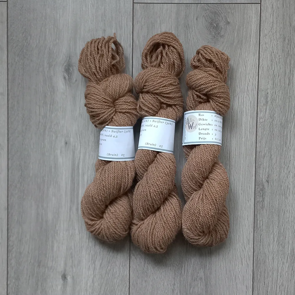 Een mix van schaap met alpaca. Dit garen bestaat voor 70% uit Alpaca wol en voor 30% uit Swifter.