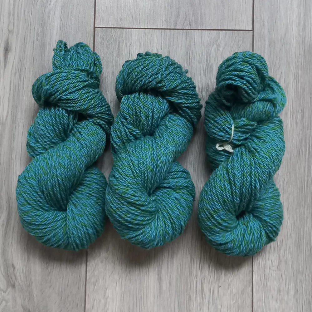 Dit garen bestaat uit 2 verschillende kleuren, namelijk de groene kleur Gras en de blauwe kleur Golf.Â