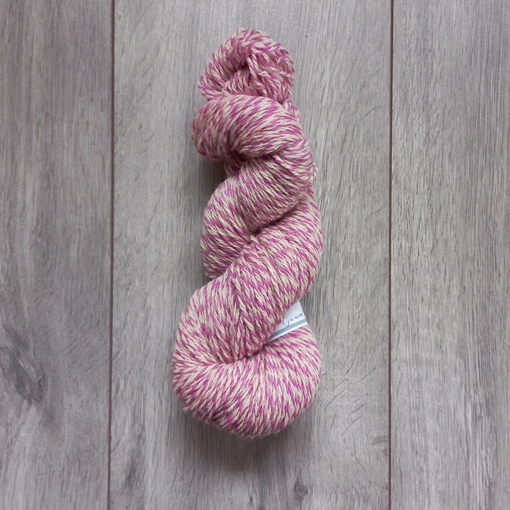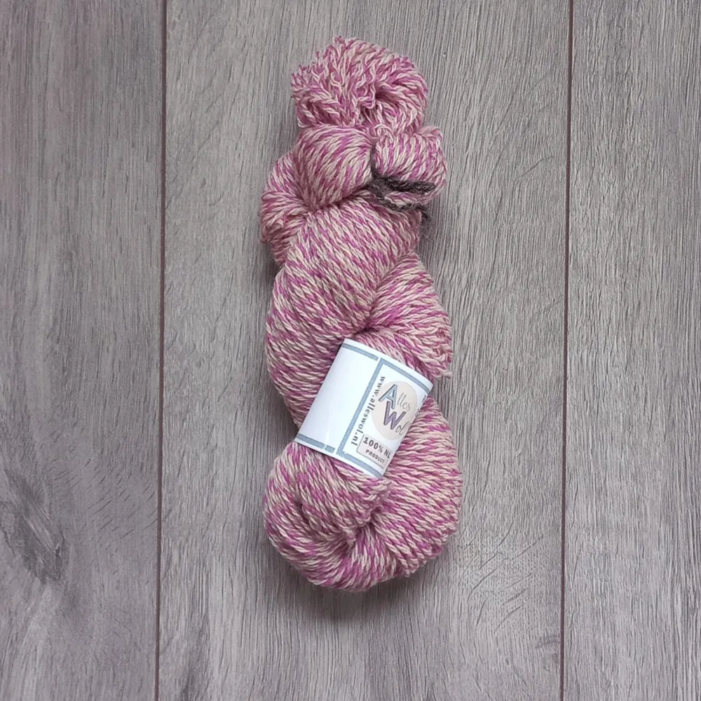 Deze roze kleur combineert daarom goed bij dit garen.