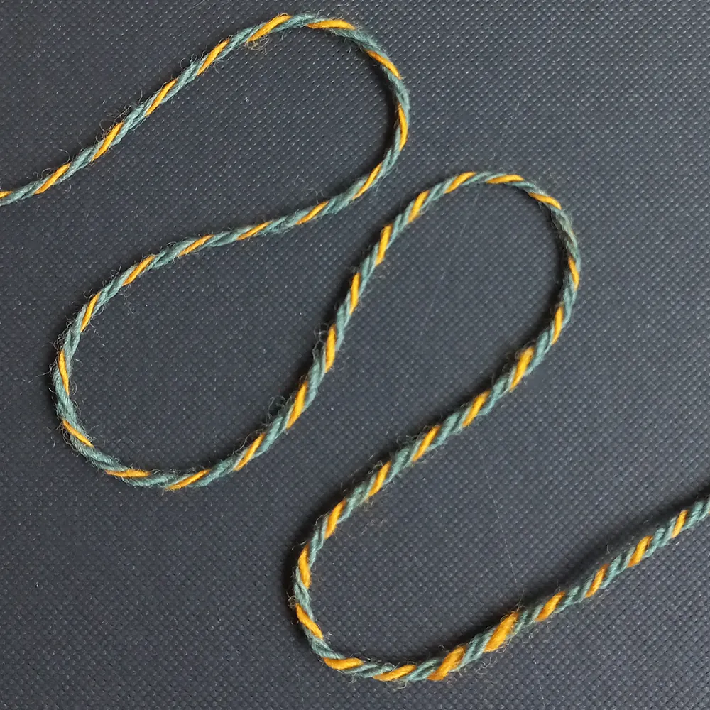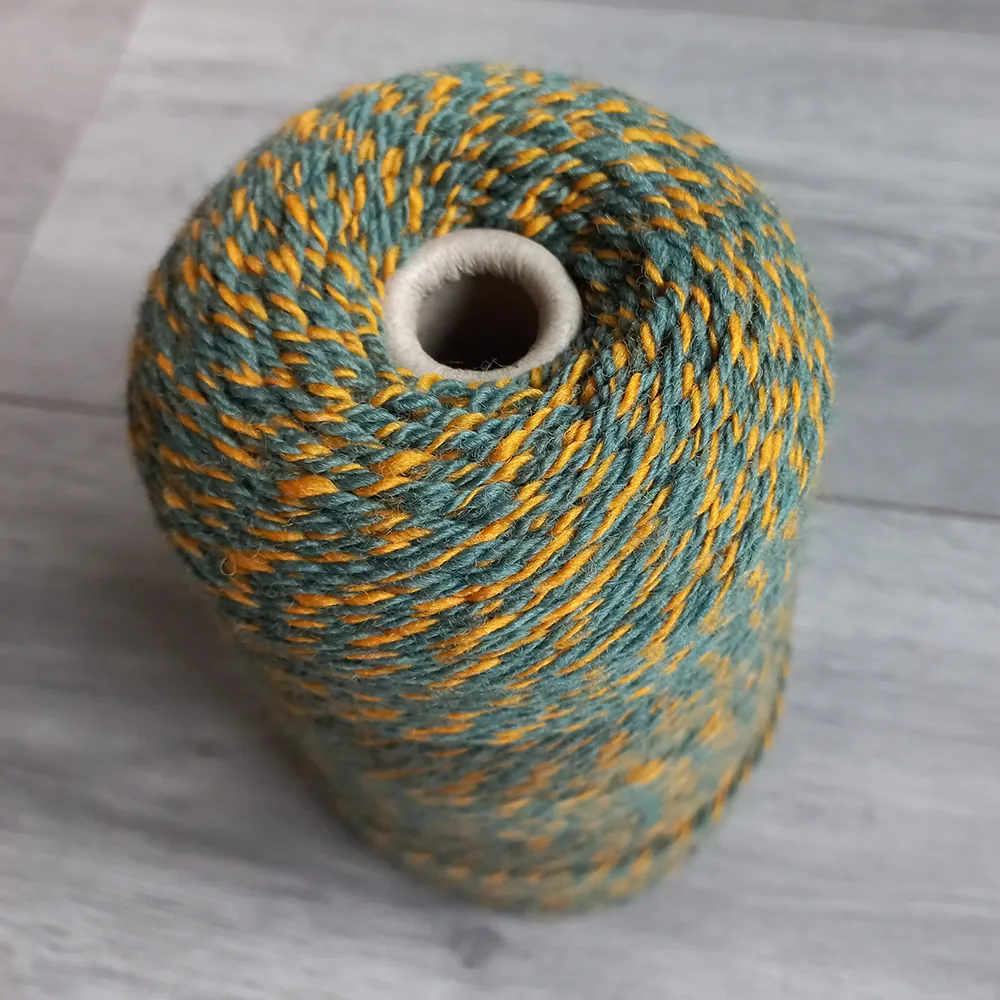 Dit garen bestaat uit 2 verschillende kleuren die we ook in een effen kleur hebben, namelijk de groene kleur Palm en de oranje kleur Goudsbloem.