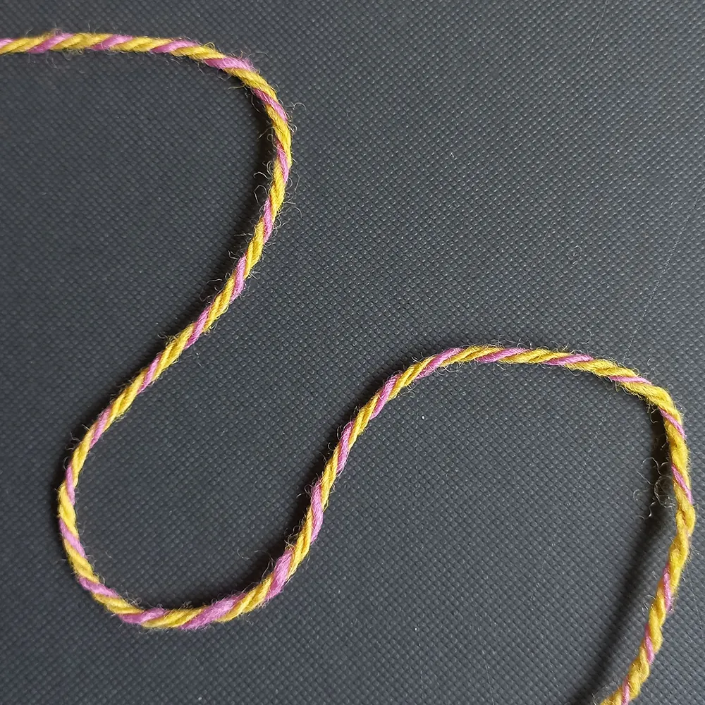 Dit garen bestaat uit 2 verschillende kleuren die we ook in een effen kleur hebben, namelijk de gele kleur Limoen en de paarse kleur Purper.