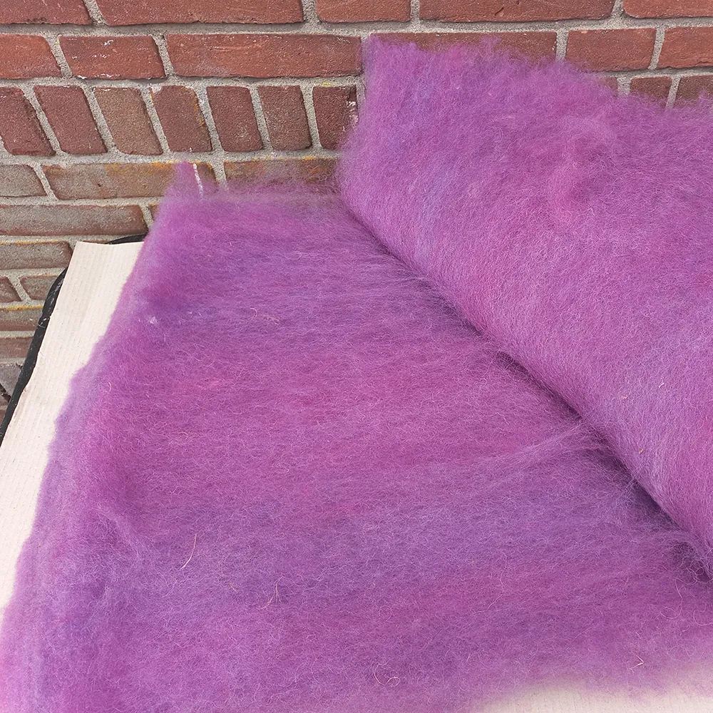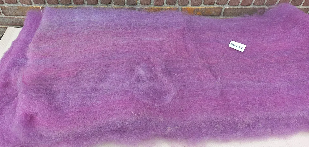 Afmeting:Â Ons kaardvlies heeft standaard een afmeting van ongeveer 50-60 cm breed en ongeveer 120 cm lang. Het ligt aan het gewicht van de vacht hoe dik dit kaardvlies uiteindelijk wordt. Bij verkoop van een kleine hoeveelheid (zoals 100 of 200 gram) kan het lastig zijn om precies dit gewicht van het vlies te halen. Het is daarom mogelijk dat we het vlies op een andere manier moeten splitsen waardoor het niet meer zijn oorspronkelijke afmeting heeft. Natuurlijk ontvang je altijd je gekozen gewicht.