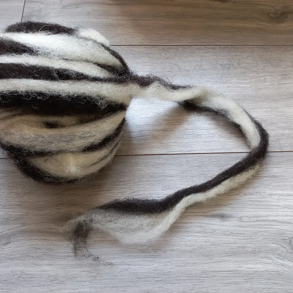 Tweekleurig schapen lontwol per 100 gram.