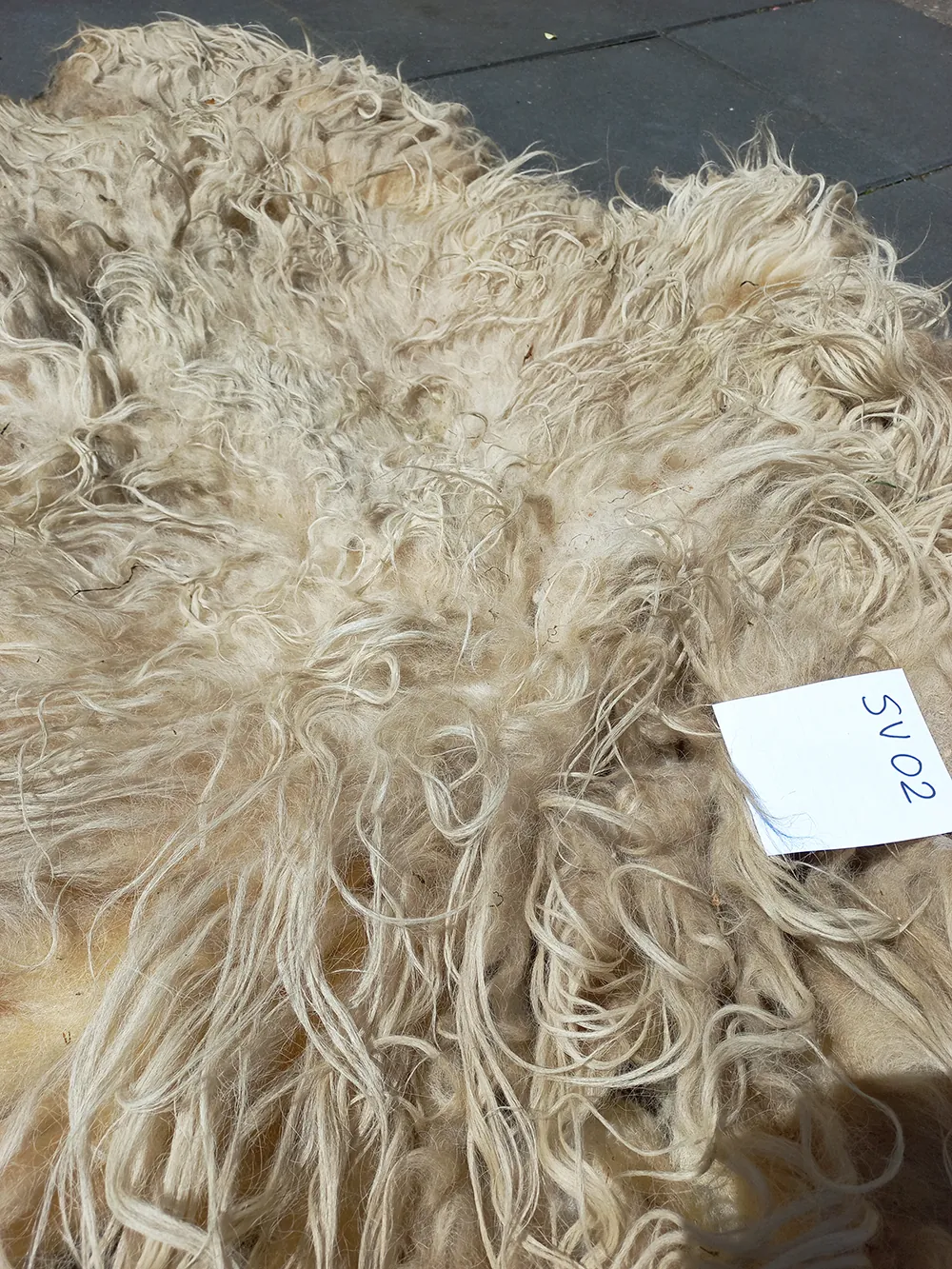 Deze schapenvacht komt uit Nederland en is nog ruw en onbewerkt. De meest vieze en onbruikbare delen zijn verwijderd.