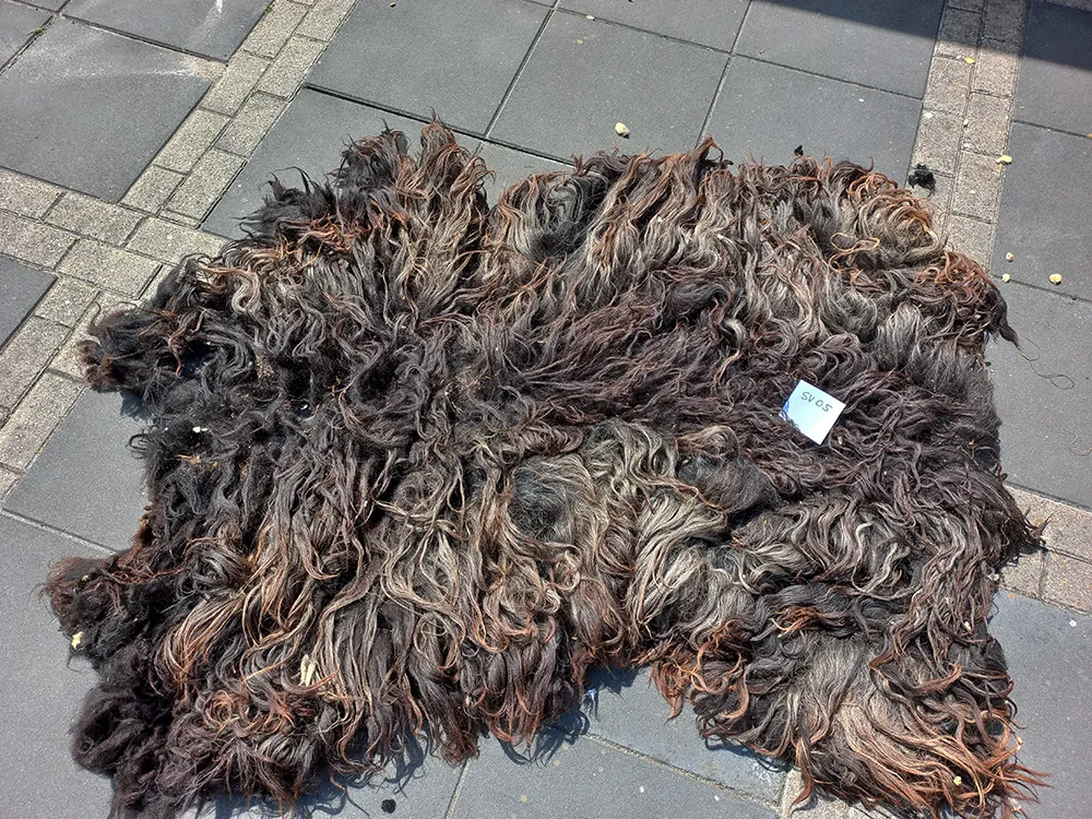 Bijzonderheden: Grote vacht. Midden over de rug zit wel wat vegetatie en troepjes. Zie foto’s.