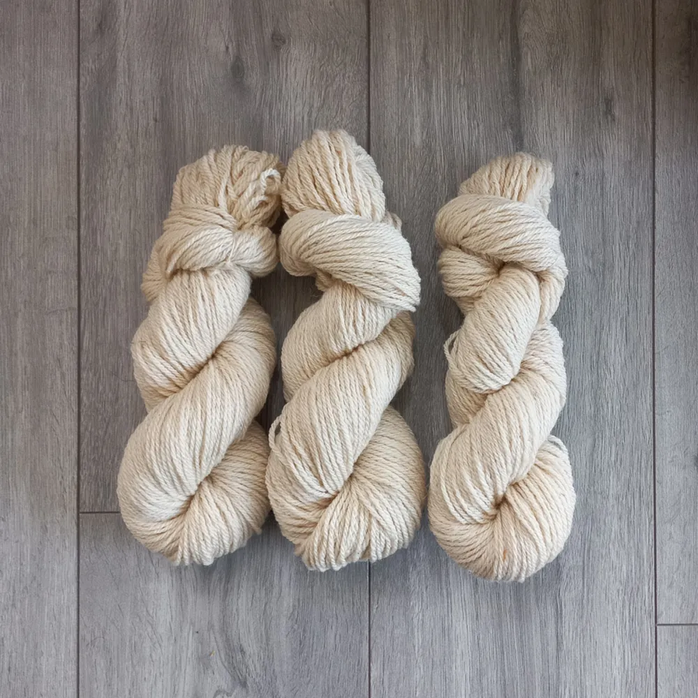 Verkoop per streng van circa 100 gram met een lengte van 157 meter. Het garen is 3-draads getwijnd.