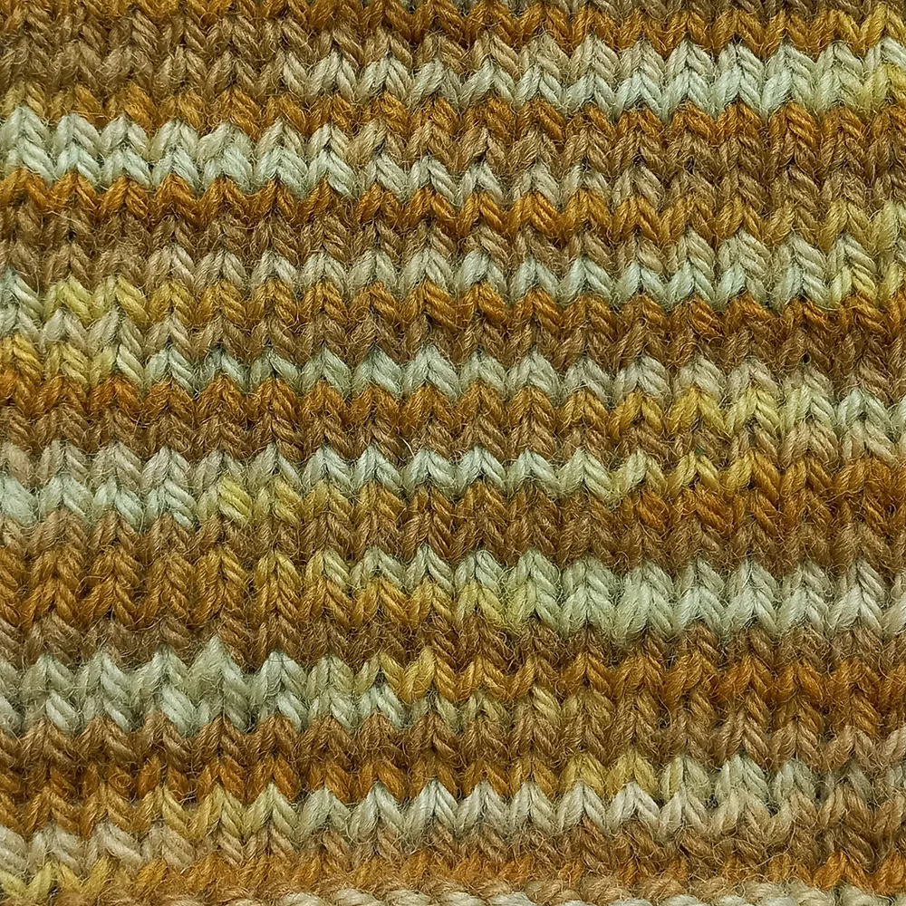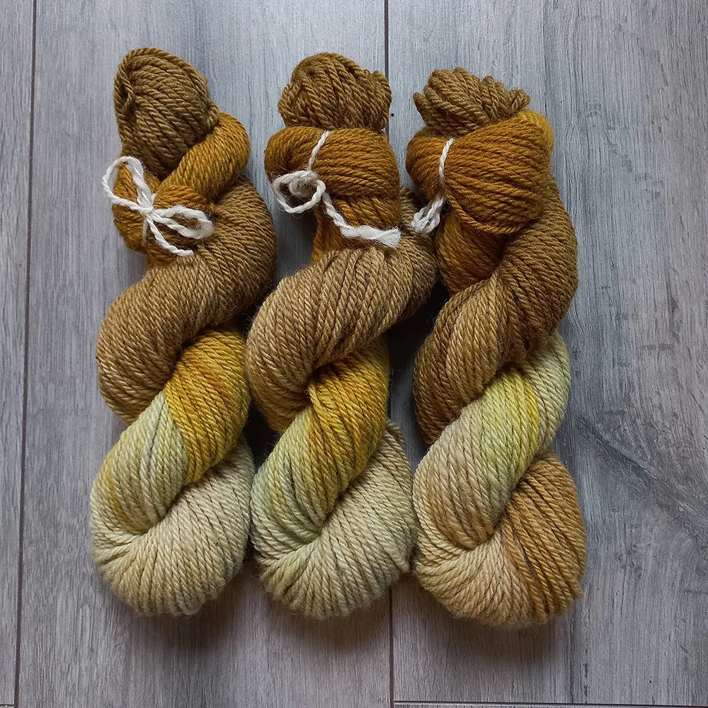 Handgeverfd garen van het Texelaar Schaap geïnspireerd op riet, wuivend in de wind.